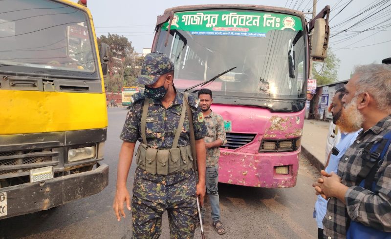 পরিবেশ অধিদপ্তর গাজীপুর জেলা ও জেলা প্রশাসনের সহযোগিতায় পরিবেশ দূষণ যানবাহনে অভিযান জরিপানা আদায়
