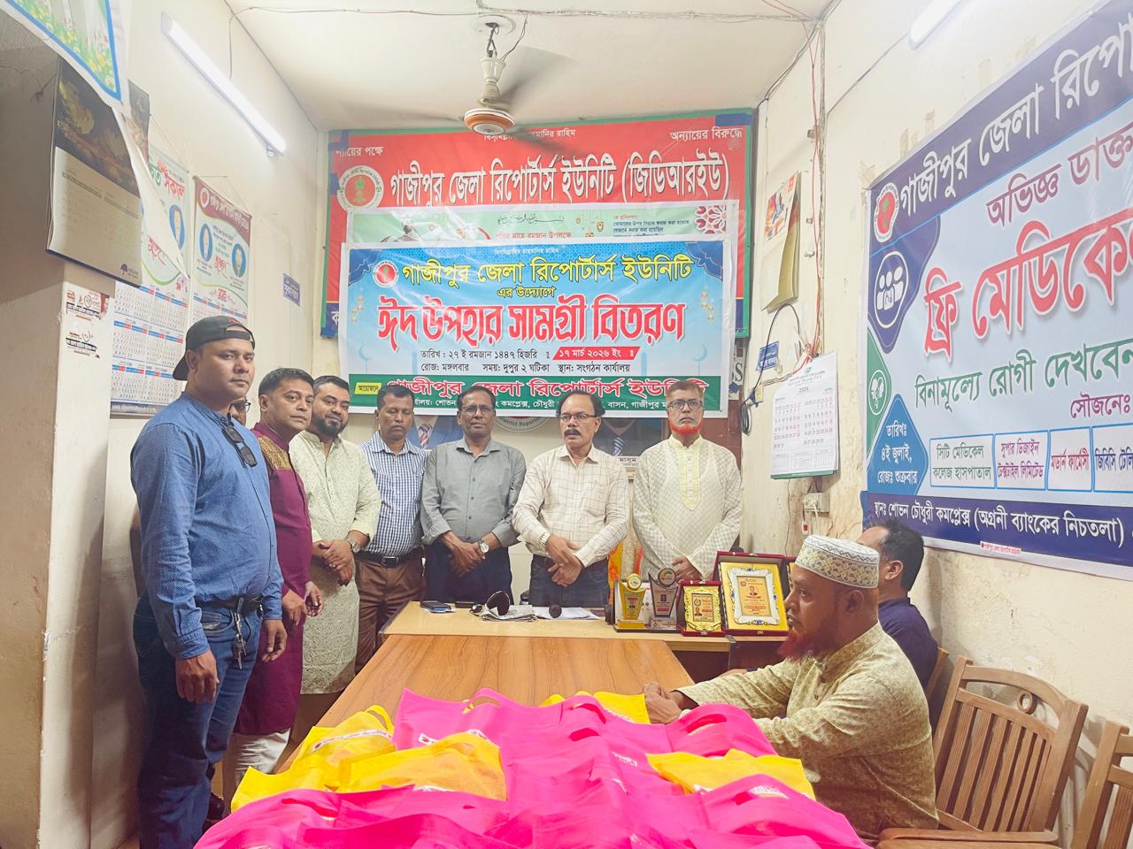 পবিত্র মাহে রমজান উপলক্ষে গাজীপুর জেলা রিপোর্টার্স ইউনিটির উদ্যোগে ঈদ উপহার সামগ্রী বিতরণ অনুষ্ঠিত হয়েছে।