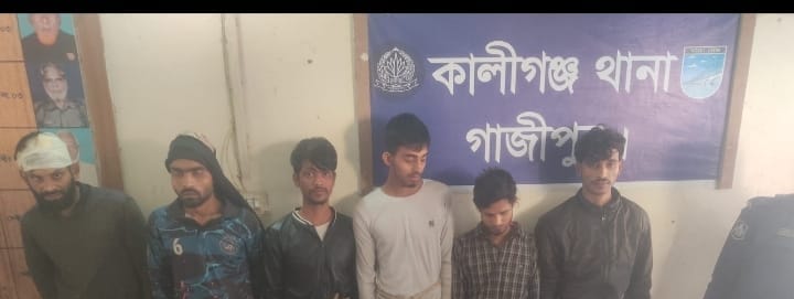 কালীগঞ্জে অপহরণ ও চাঁদাবাজির ঘটনায় শীর্ষ ছিনতাইকারী মিঠু পাঠানসহ ৬ জন গ্রেফতার, ভিকটিম উদ্ধার