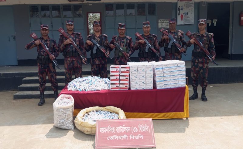 শেরপুর-ময়মনসিংহ সীমান্তে ভারতীয় অবৈধ পন্য জব্দ করেছে বিজিবি